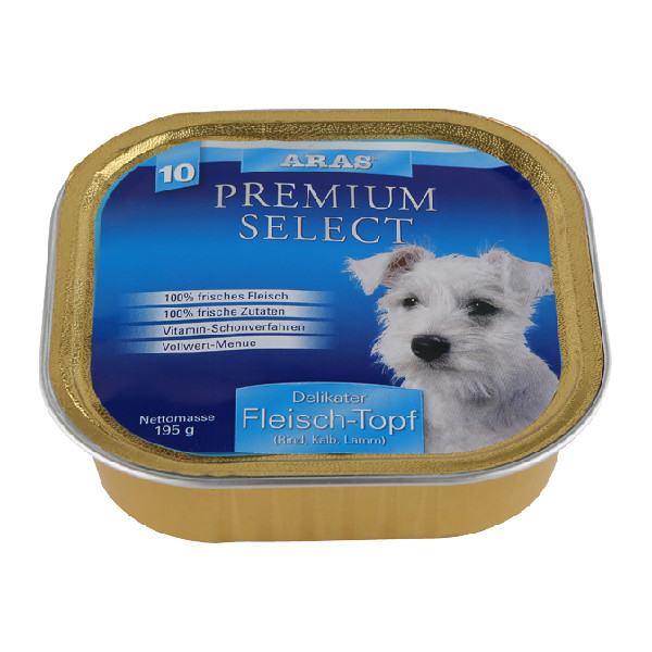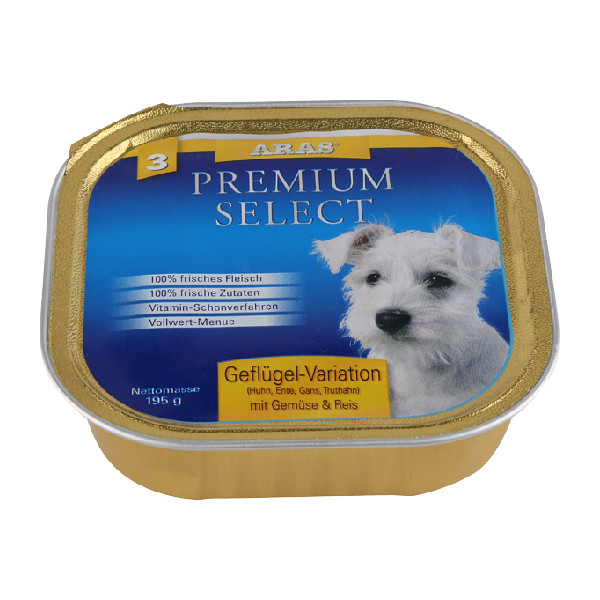 Prémiové vlhké krmivo Aras Premium Select v ponuke v 10 druhoch pre všetky rasy: