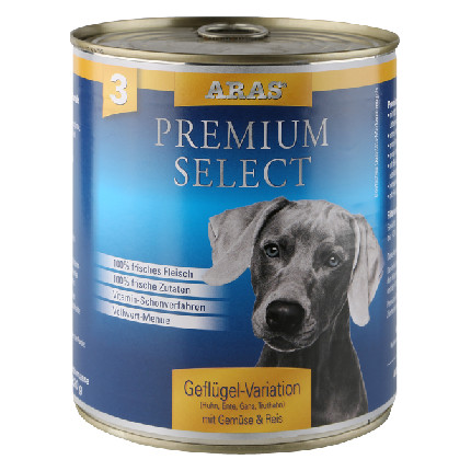 Prémiové vlhké krmivo Aras Premium Select v ponuke v 10 druhoch pre všetky rasy: